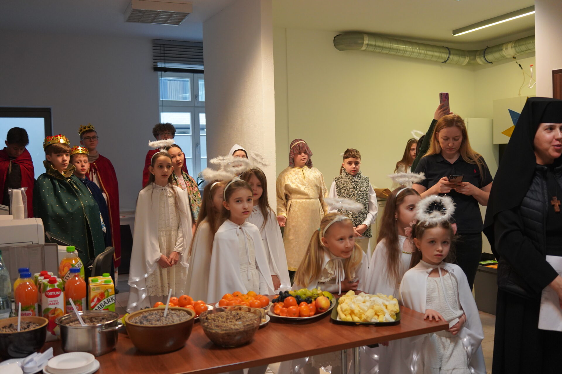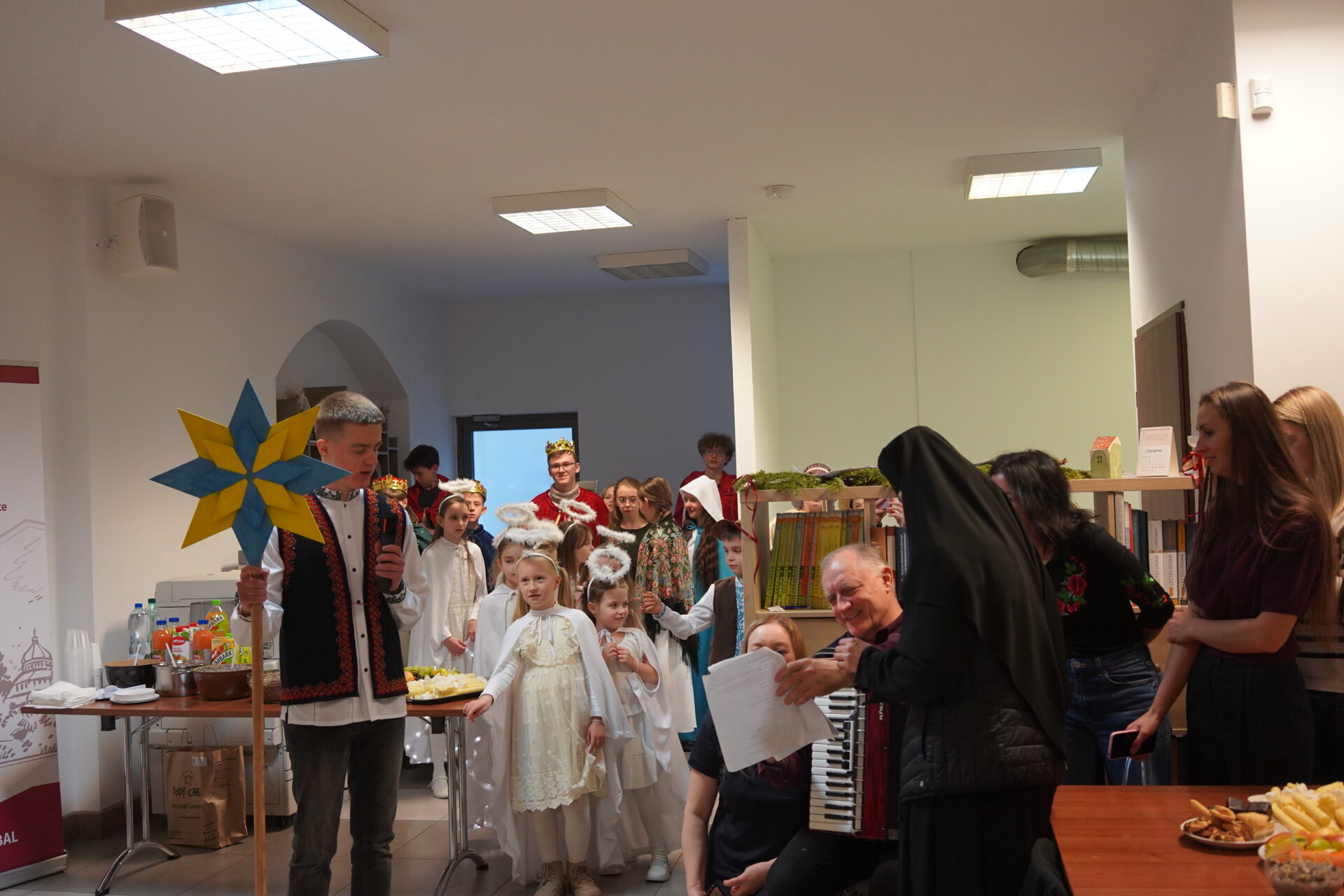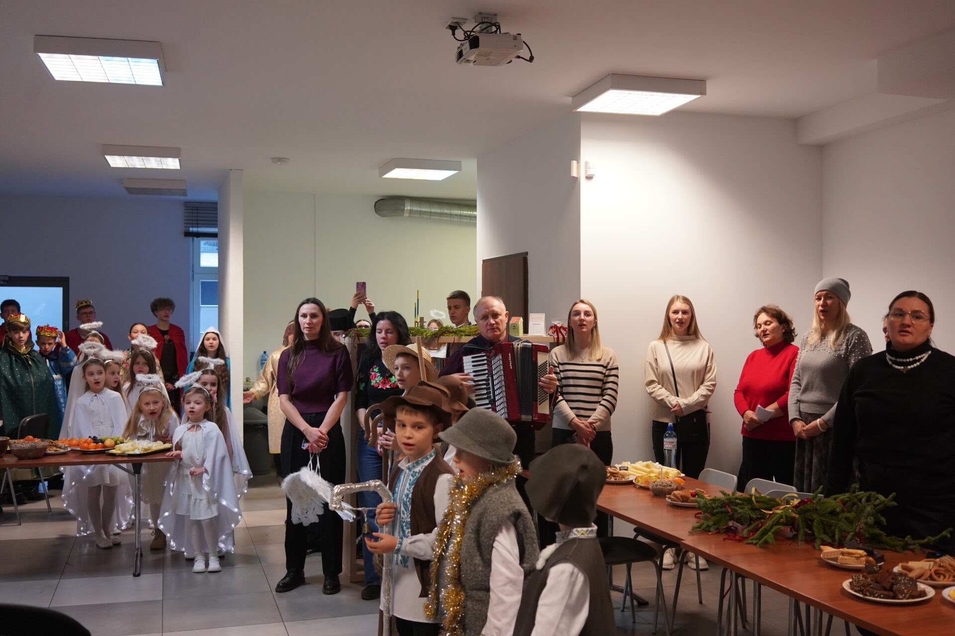 Після божественної Літургії парафіяни перейшли до світлиці, де ділилися освяченою просфорою. Зі словом привітання до присутніх звернувся парох парафії о. Андрій Михалишин, який привітав усіх з наближаючимися святами Різдва Христового та побажав Божого благословення, миру і радості. Особливим моментом цієї зустрічі був виступ парафіяльних дітей, яких підготувала сестра Йосифа. Через сценічне дійство та колядки вони передали зміст і радість народження Спасителя, створивши святкову та піднесену атмосферу.