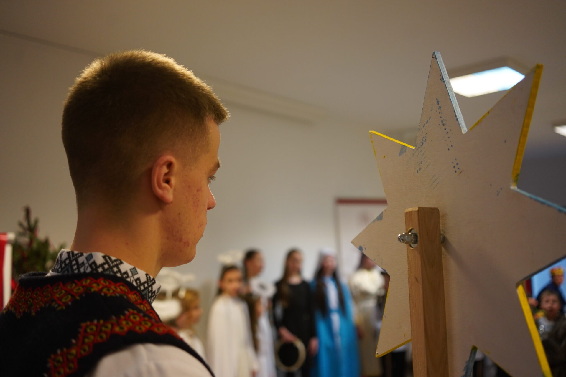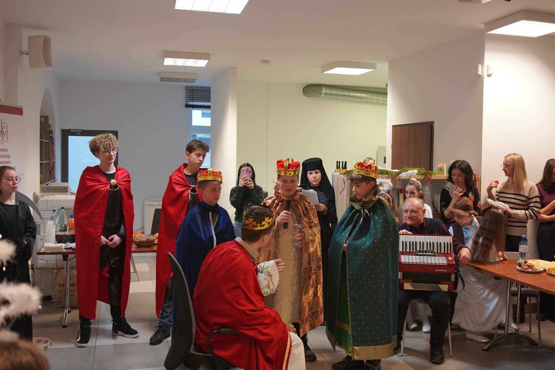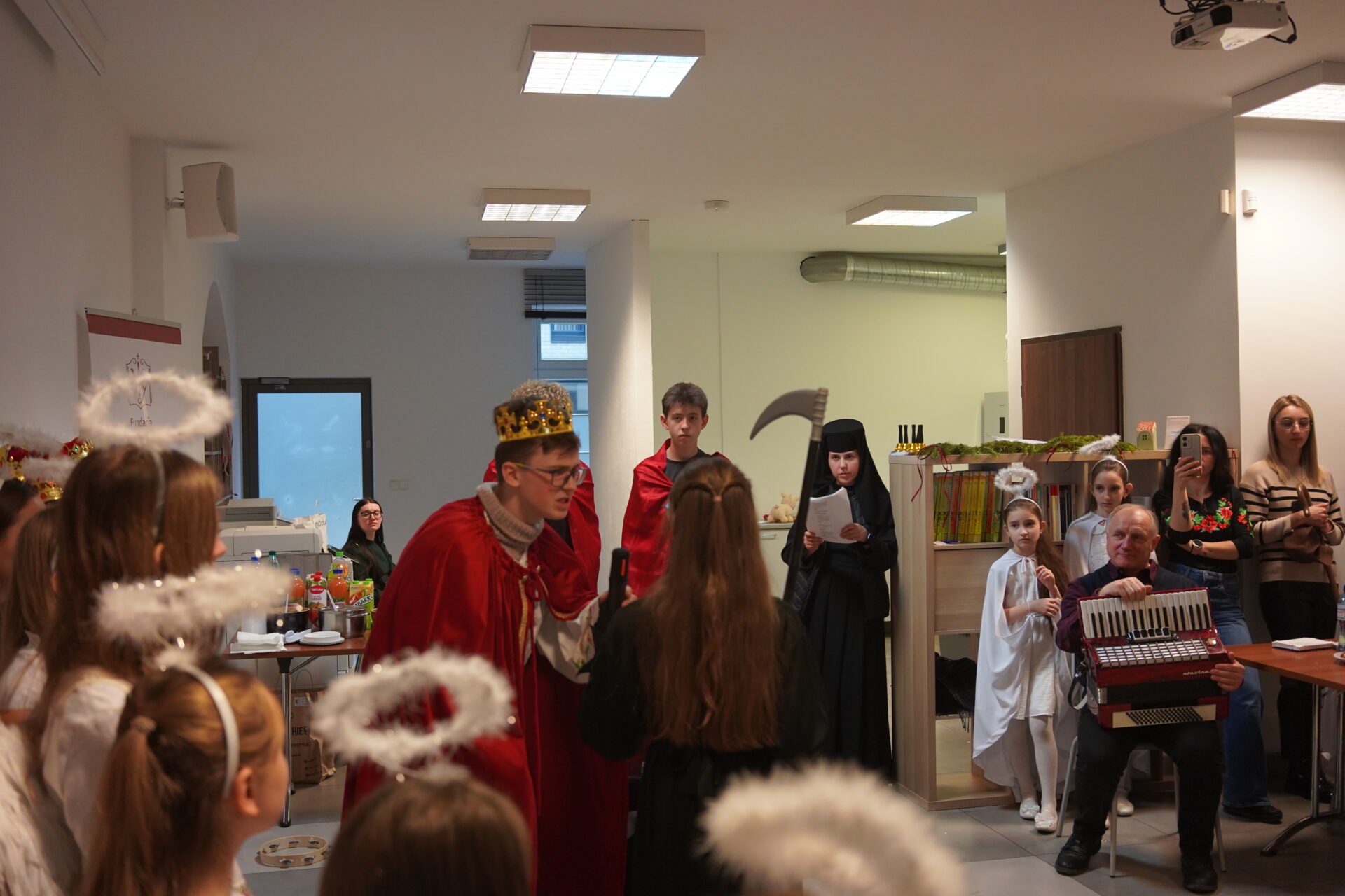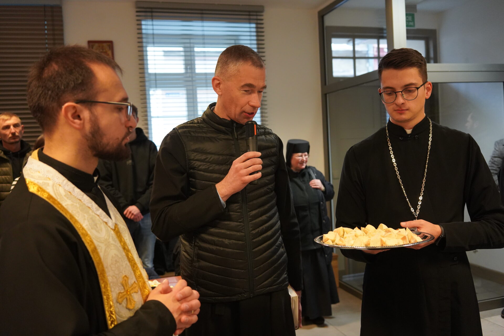 Після божественної Літургії парафіяни перейшли до світлиці, де ділилися освяченою просфорою. Зі словом привітання до присутніх звернувся парох парафії о. Андрій Михалишин, який привітав усіх з наближаючимися святами Різдва Христового та побажав Божого благословення, миру і радості. Особливим моментом цієї зустрічі був виступ парафіяльних дітей, яких підготувала сестра Йосифа. Через сценічне дійство та колядки вони передали зміст і радість народження Спасителя, створивши святкову та піднесену атмосферу.