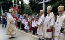 Перед храмом вірні привітали духовенство за українським звичаєм — з хлібом і сіллю, а відтак подякували за їхнє служіння і відвідини. Про це розповідає Департамент інформації УГКЦ.