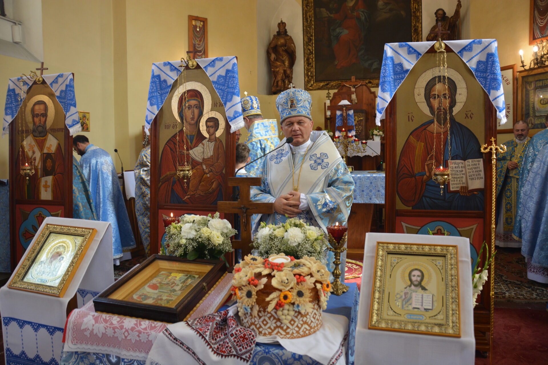 На закінчення святкувань владики посвятили даровану парафії в Олаві різблену в дереві Ікону Покрови Матері Божої. Один з бувших вже парафіян Олави, пан Юрко Лабівський, який разом з родиною переселився на Лемківщину, пояснив, що це подарунок для парафії з нагоди її Ювілею 40-ліття. Ікону виконав о. Петро Качмар, парох греко-католицьких парафій в Лосю, Новиці та Пантній на Лемківщині.