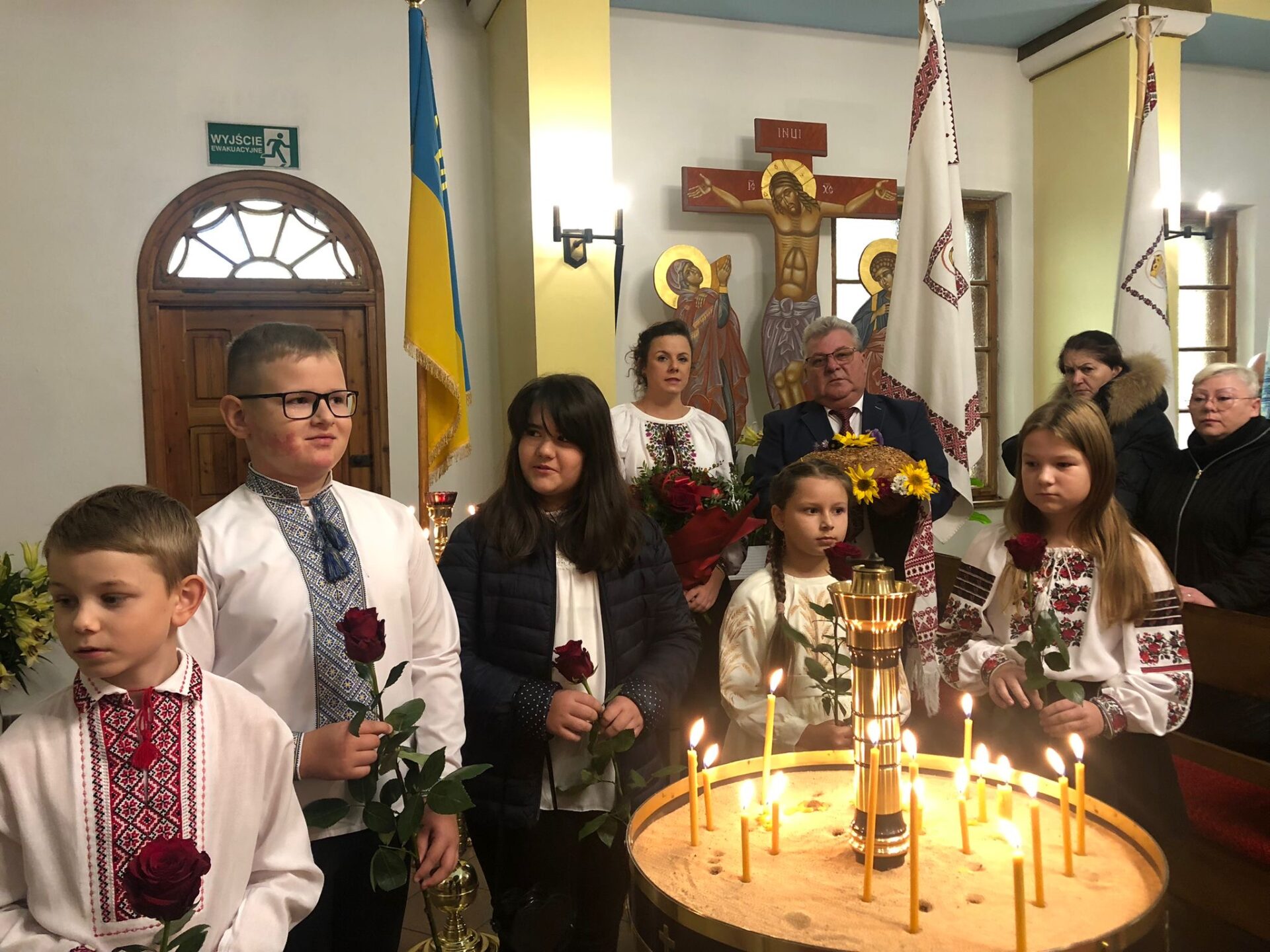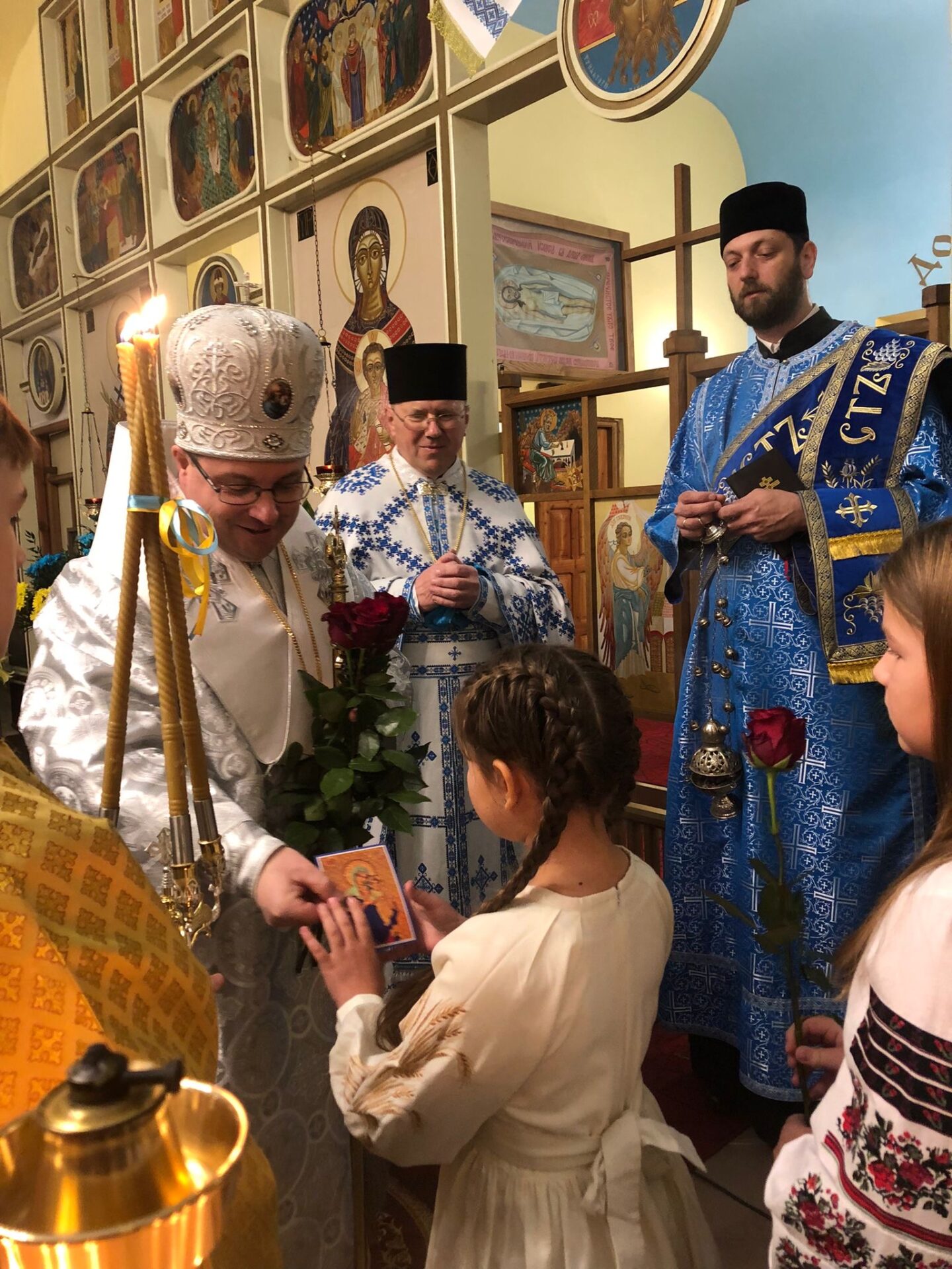 Привітання Владики Маріуша Дмитерка у церкві через дітей, парафіян та отця пароха були початком до відслуження Архієрейської Божественноє Літургії.Дияконував дн Павло Лапічак.